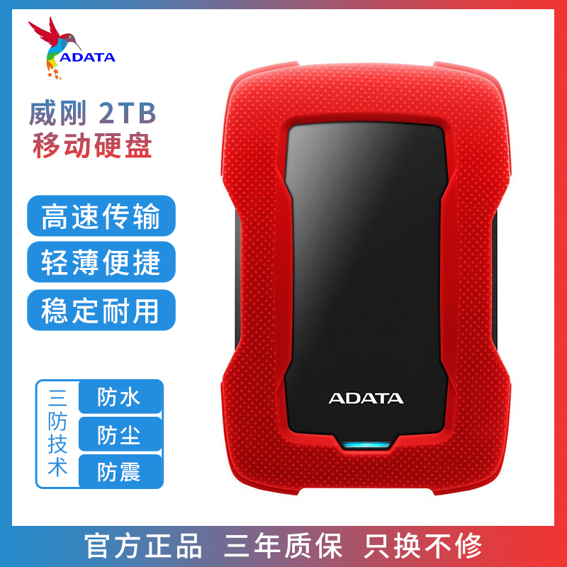 威刚移动硬盘 HD330 2TB USB3.0 防尘防震防水三防技术 蓝色 持久耐用