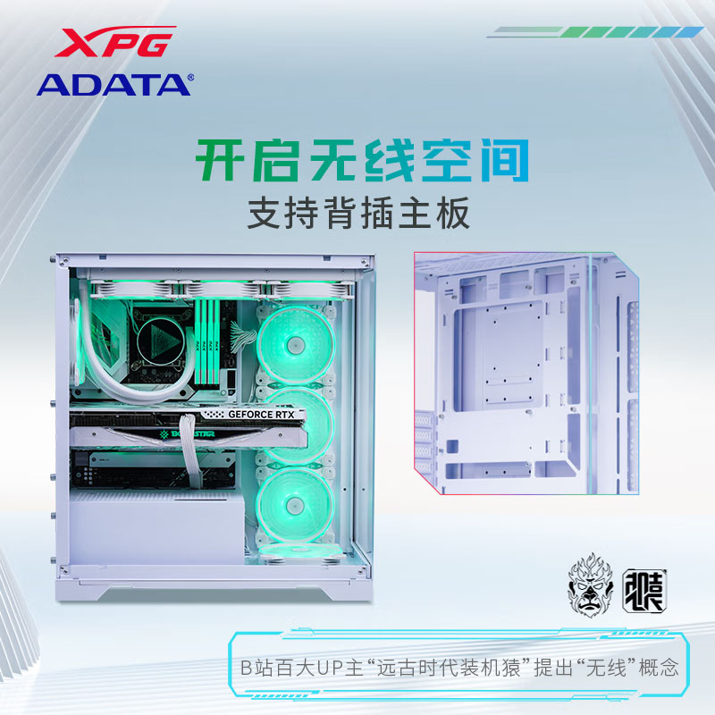 威刚(ADATA)XPG空境 超白玻版 ATX海景房机箱台式机 支持360水冷 兼容MATX背插主板前置C口
