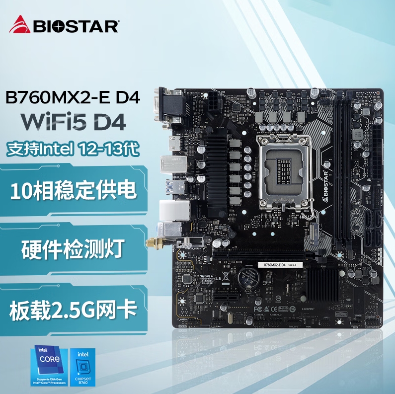 映泰(BIOSTAR)B760MX2-E D4 主板含WiFi5网卡支持DDR4内存/CPU13400F/13600K/1240