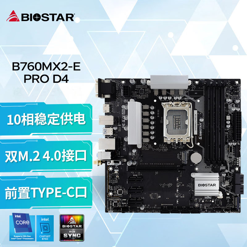 映泰(BIOSTAR)B760MX2-E PRO D4主板WiFi5支持DDR4 13400F/13600KF/13700K