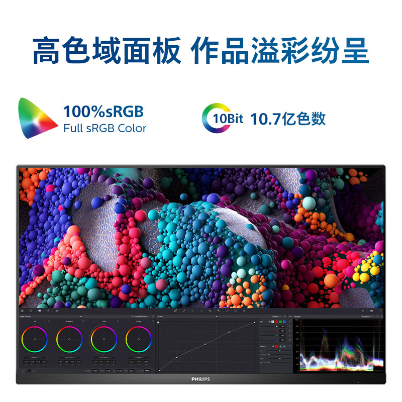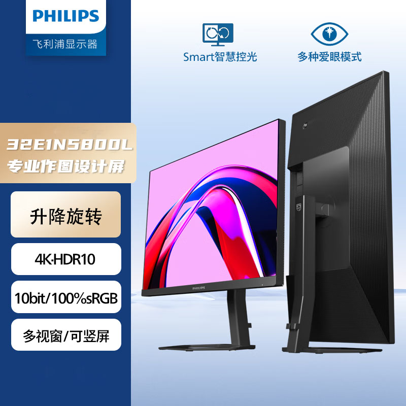 飞利浦 32E1N5800L 31.5英寸 4K超清 HDR技术100%sRGB广色域专业作图设计显示屏 升降旋转办公台式电脑显示器