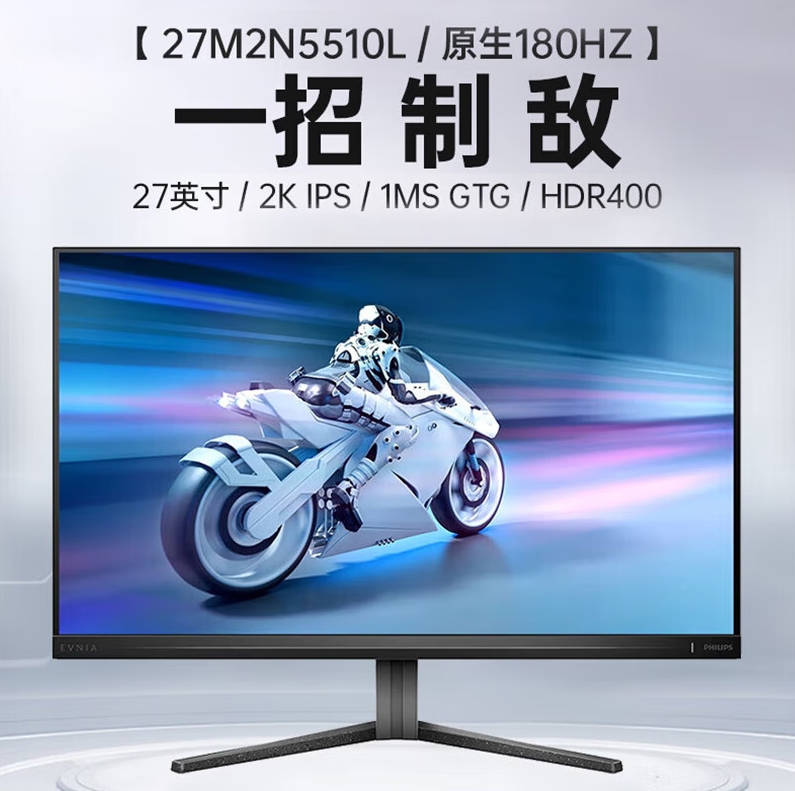 飞利浦(PHILIPS)27M2N5510L 27英寸 2K原生180Hz IPS HDR400 1ms响应 电竞显示器