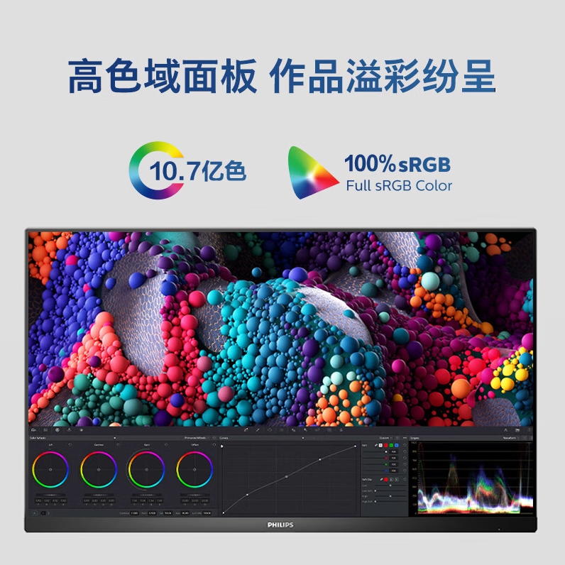 飞利浦27E1N5900R 27英寸4K IPS 10bit出厂校准HDR400 TypeC65W 低蓝光智能分屏 办公显示器