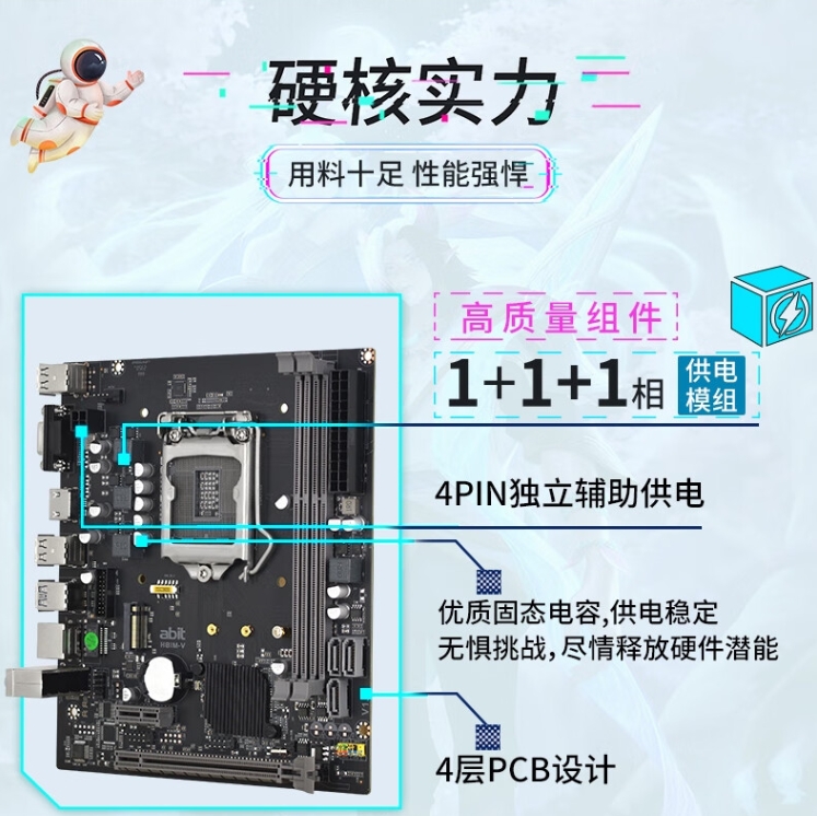 升技(abit) H81M-V 家用办公全固版主板 HDMI+VGA+M.2