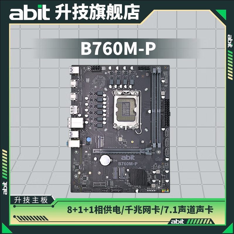 升技(abit) 探路者系列B760M-P 深空黑 主板 支持CPU 12100/12400F/13400