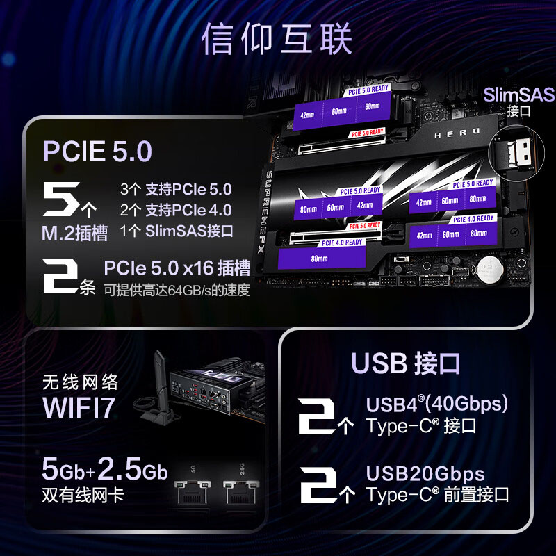 华硕ROG CROSSHAIR X870E HERO主板 支持9900X/9950X (AMD X870E/socket AM5
