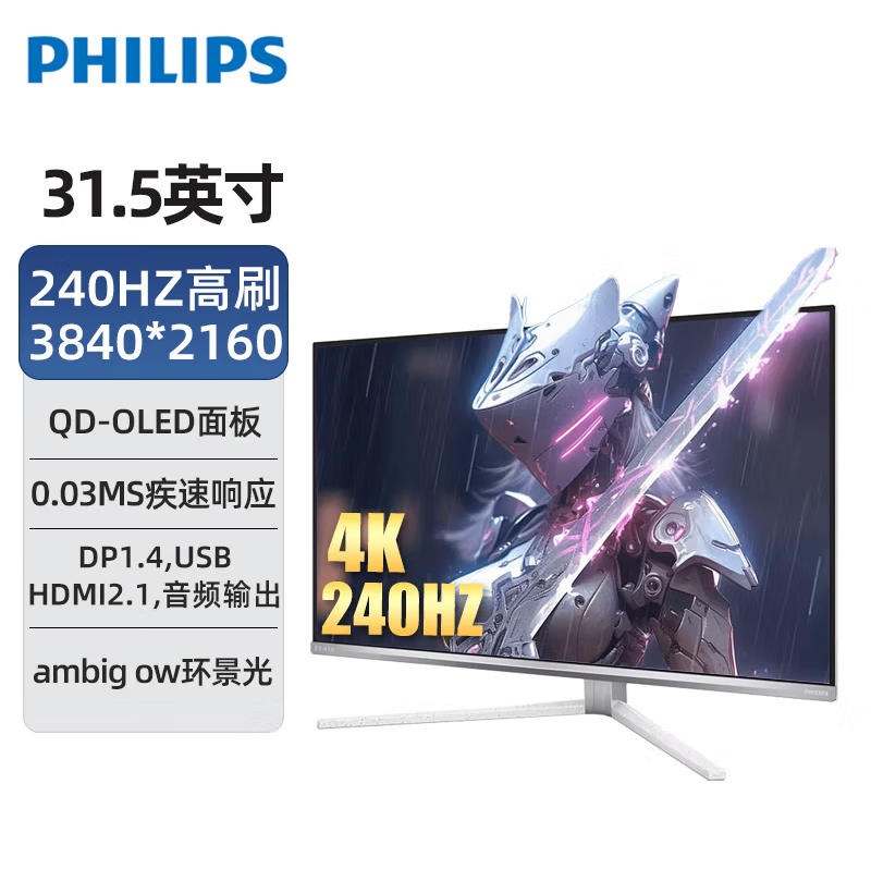 飞利浦 32M2N8800 31.5英寸QD-OLED动态冷却防烧屏4K 240Hz 电竞显示器