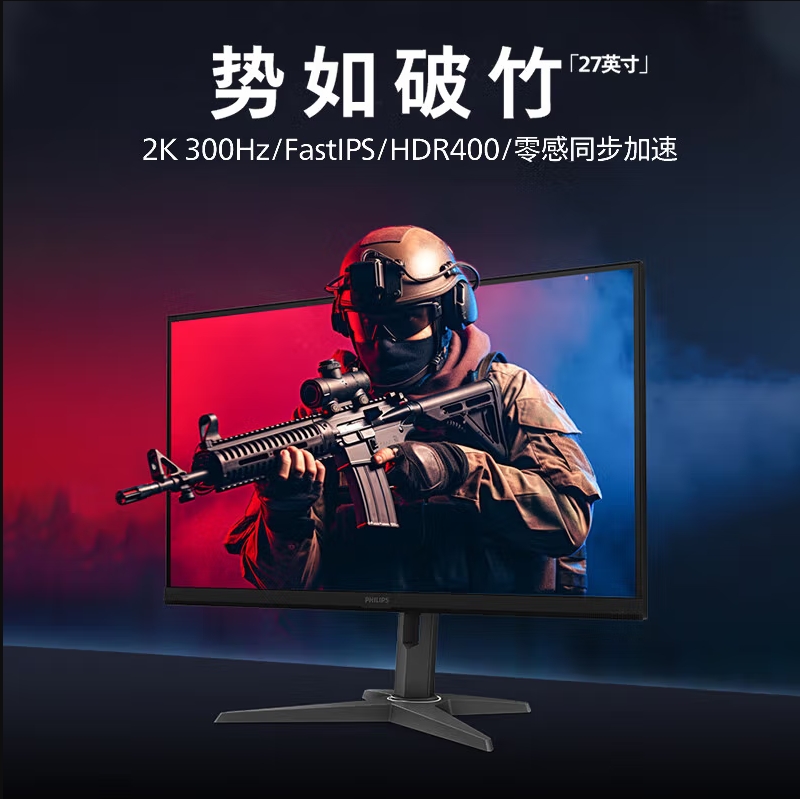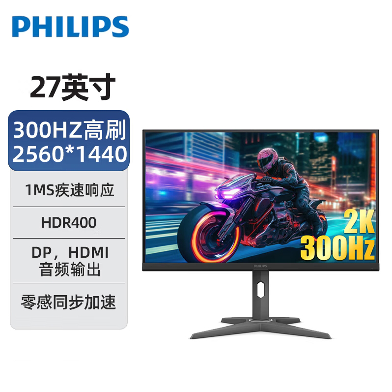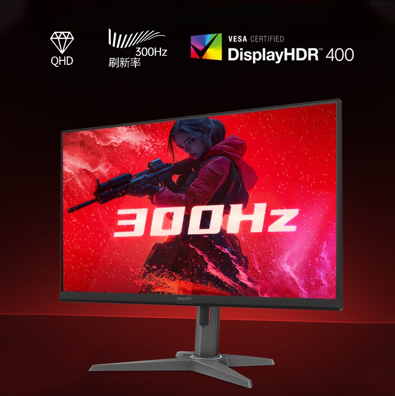 飞利浦27M3N5540U 27英寸2K 300hz电竞游戏显示器 HDR400 10bit 1msGTG 升降旋转