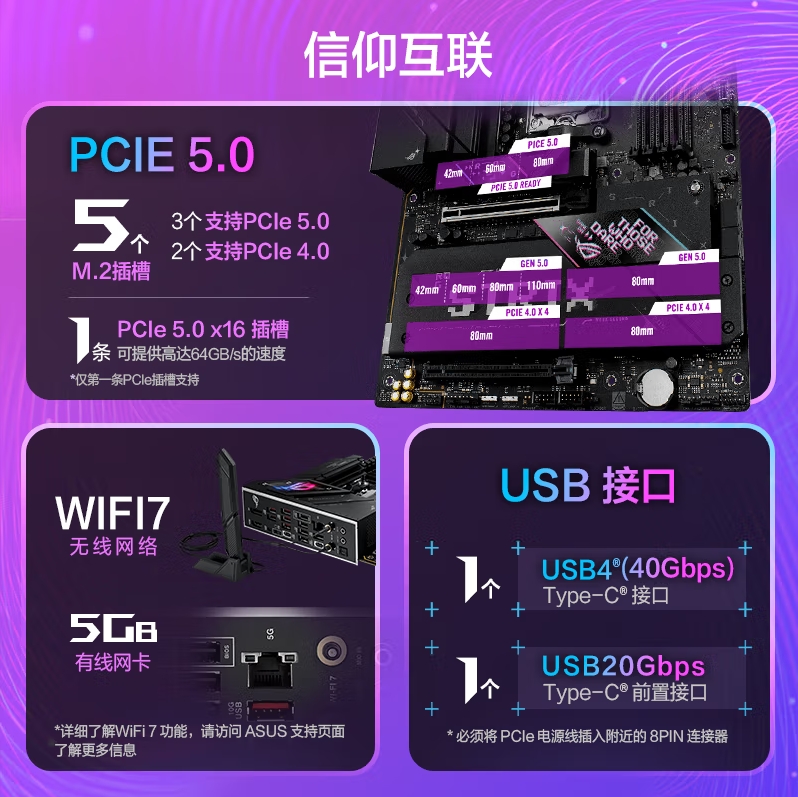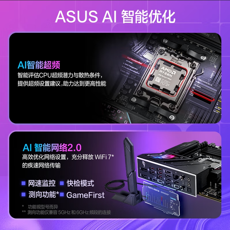 华硕ROG STRIX B850-E GAMING WIFI玩家国度电竞主板 支持 CPU 9800X3D/9950X AMD