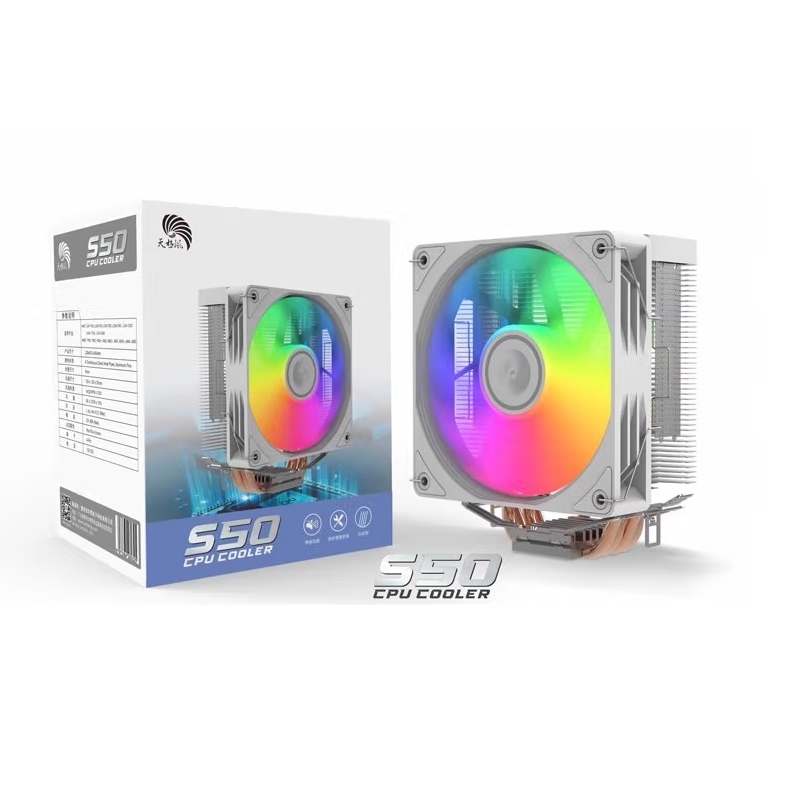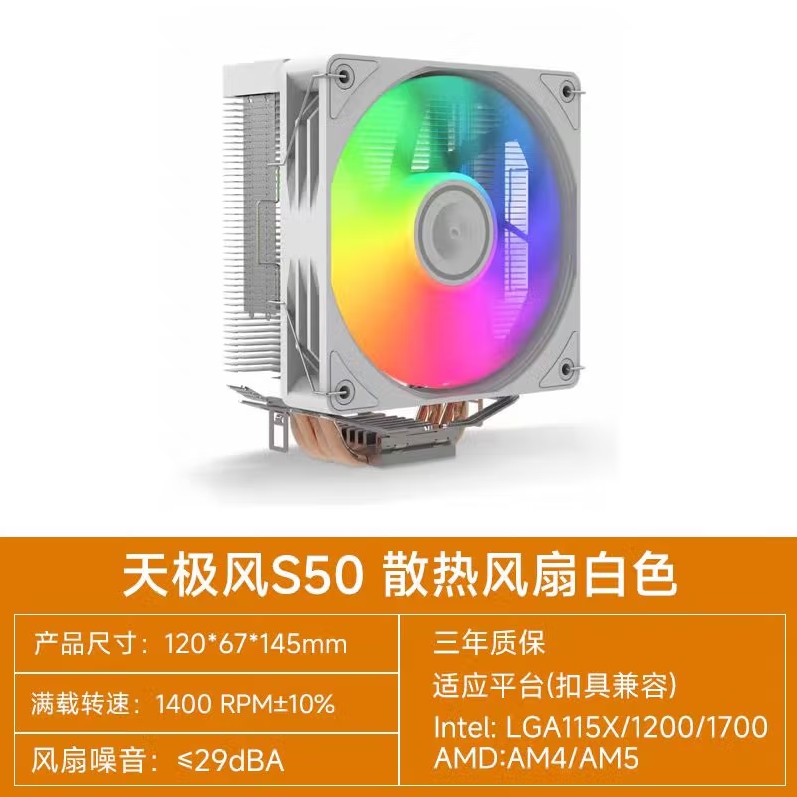 天极风 S50 白色 炫彩版 四铜管CPU散热器 支持双平台