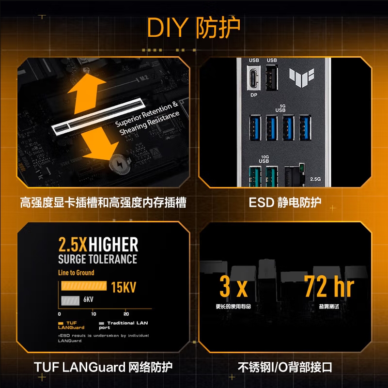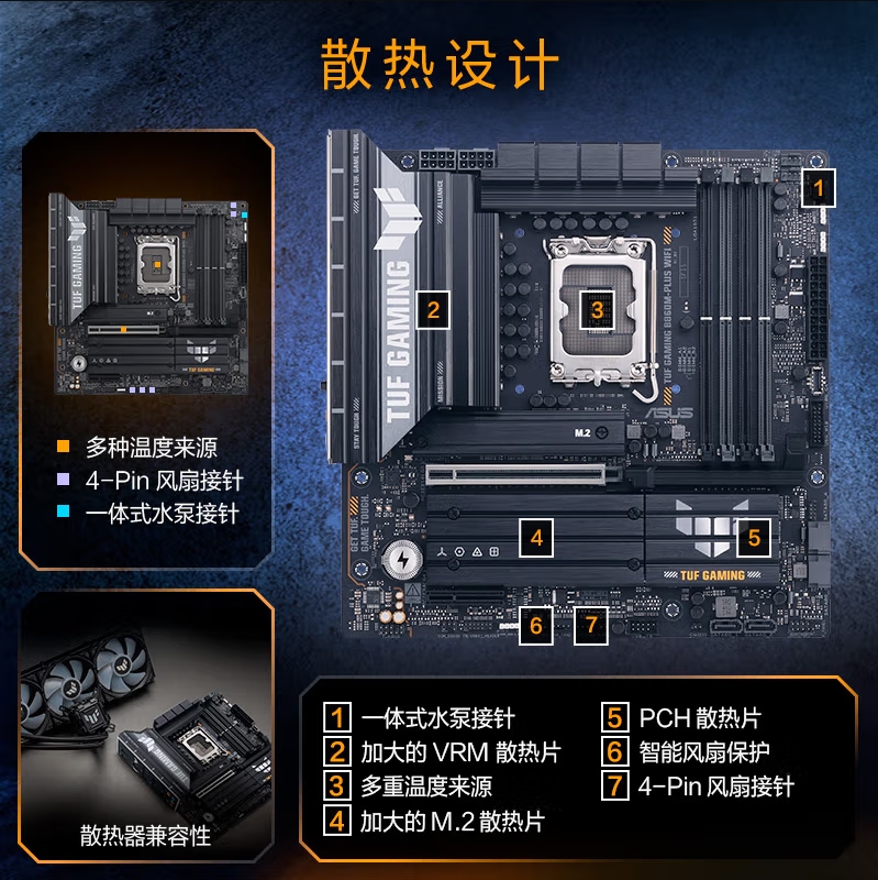 华硕TUF GAMING B860M-PLUS WIFI重炮手主板 支持 CPU 245KF/230/225 (Intel B860/LGA 1851)