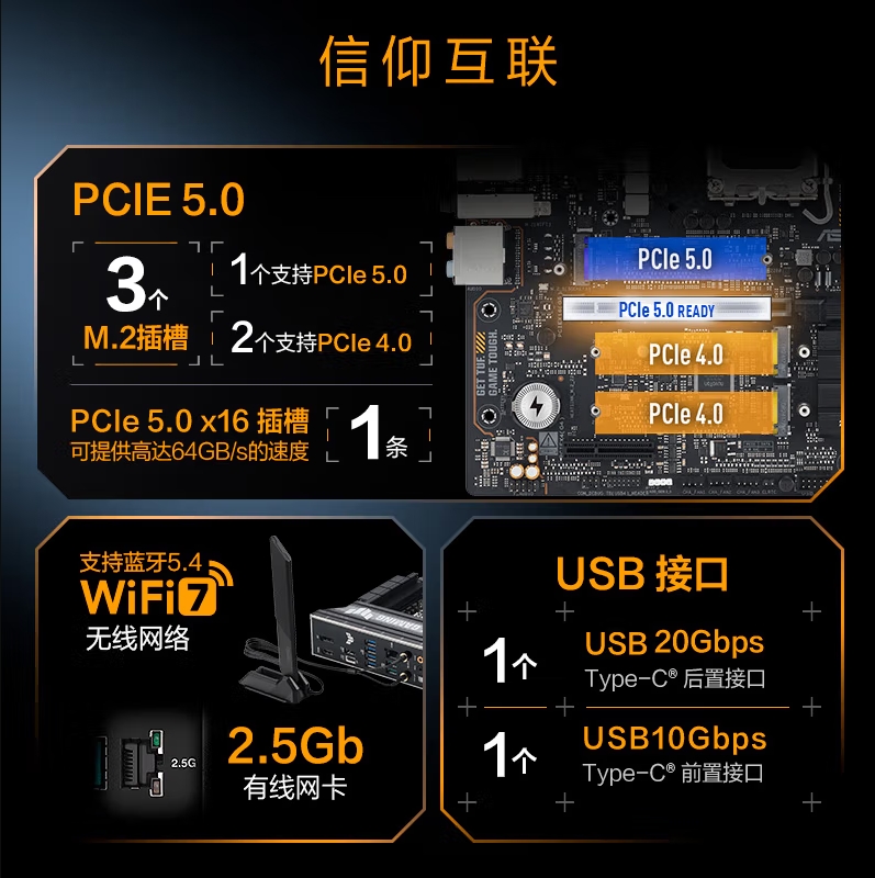 华硕TUF GAMING B860-PLUS WIFI主板 支持 CPU 265...