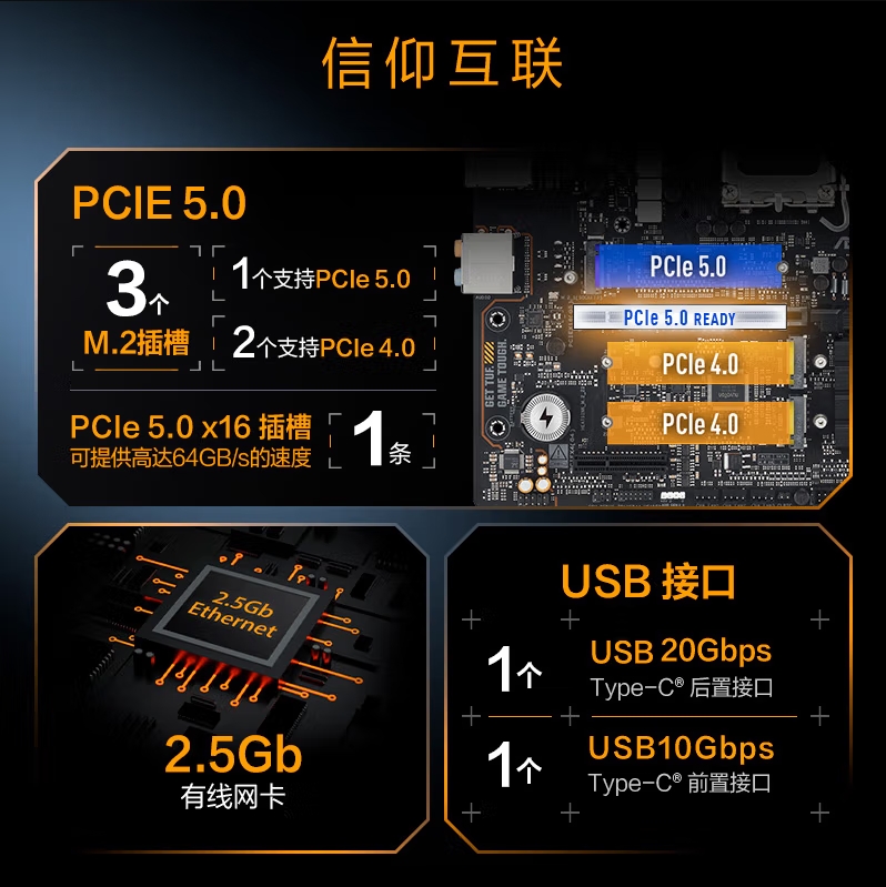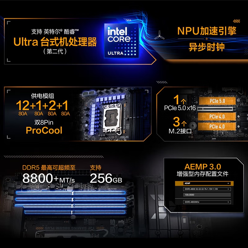 华硕TUF GAMING B860M-PLUS重炮手主板 支持 CPU 245KF230225 (Intel B860LGA 1851)
