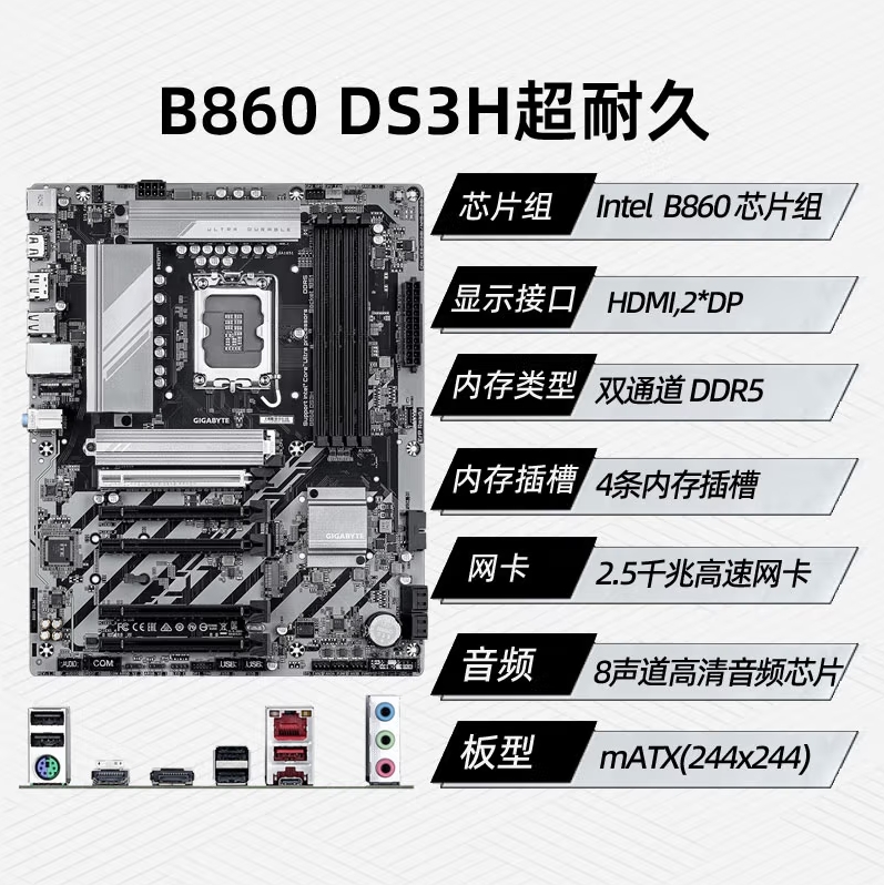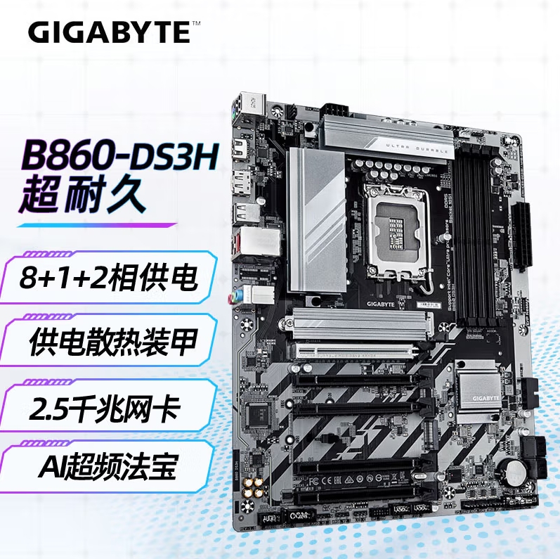 技嘉(GIGABYTE)超耐久B860 DS3H DDR5主板 支持CPU Ultra U7-265K U5-245K