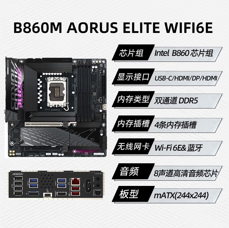技嘉(GIGABYTE)小雕B860M A ELITE WIFI6E DDR5主板 支持CPU Ultra U7-265K