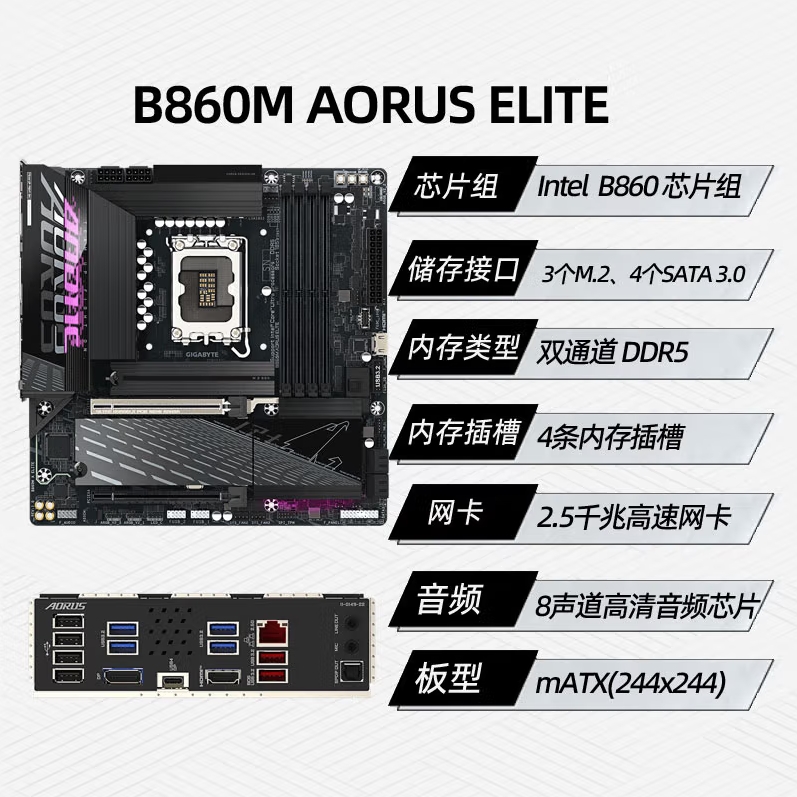技嘉(GIGABYTE)小雕B860M AORUS ELITE DDR5主板 支持CPU Ultra U7-265K