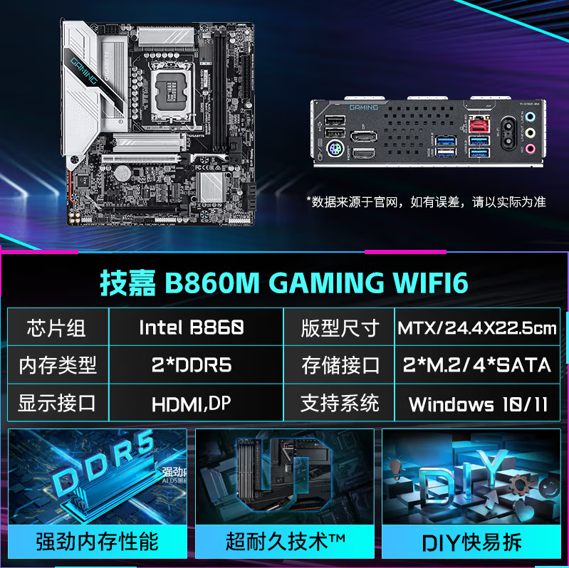 技嘉魔鹰 B860M GAMING WIFI6 DDR5主板 支持CPU Ultra U7-265K U5-245K