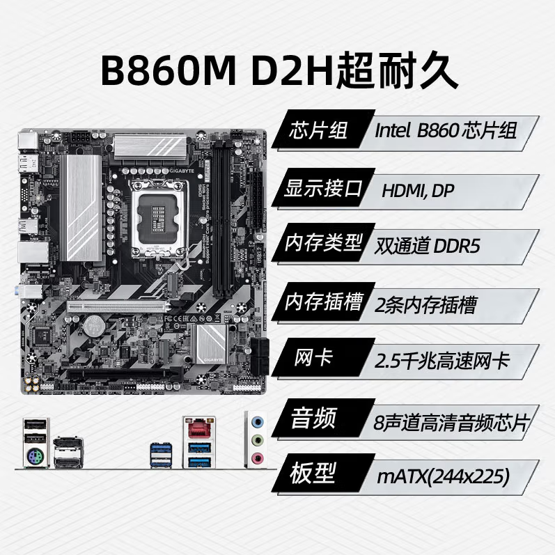 技嘉超耐久B860M D2H DDR5主板 支持CPU Ultra U7-265K U5-245K LGA 1851
