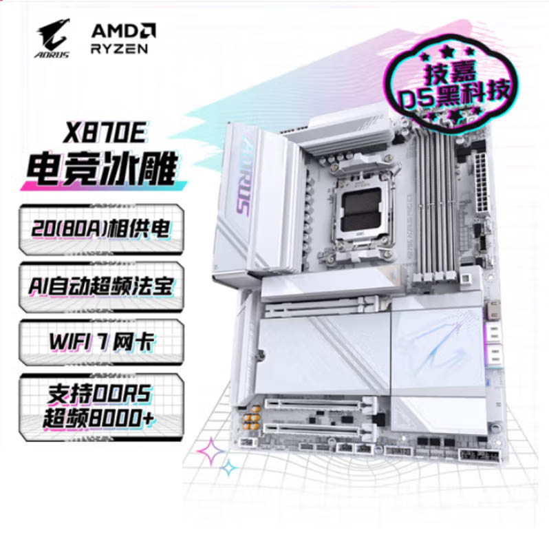 技嘉(GIGABYTE)电竞冰雕X870E AORUS PRO ICE主板DDR5支持AMD CPU AM5 9900X