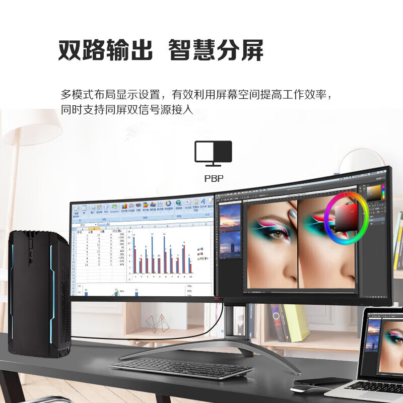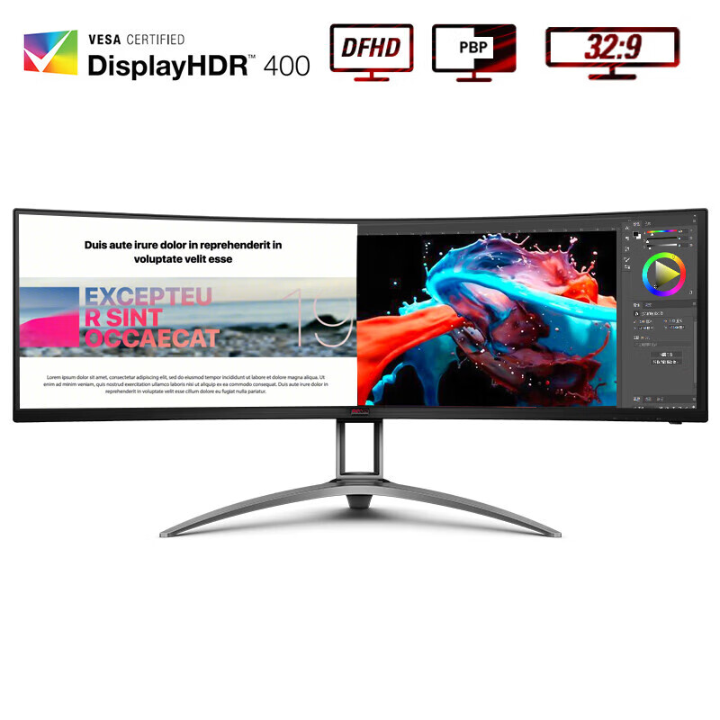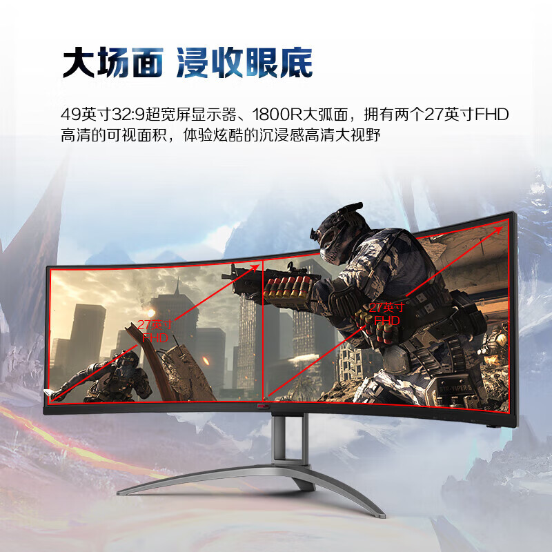 AOC 爱攻49寸 AG493UCX2 显示器4K HDR400 曲面带鱼屏 电竞游戏炒股大屏幕内置音响 显示器