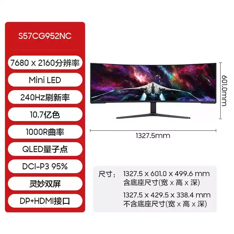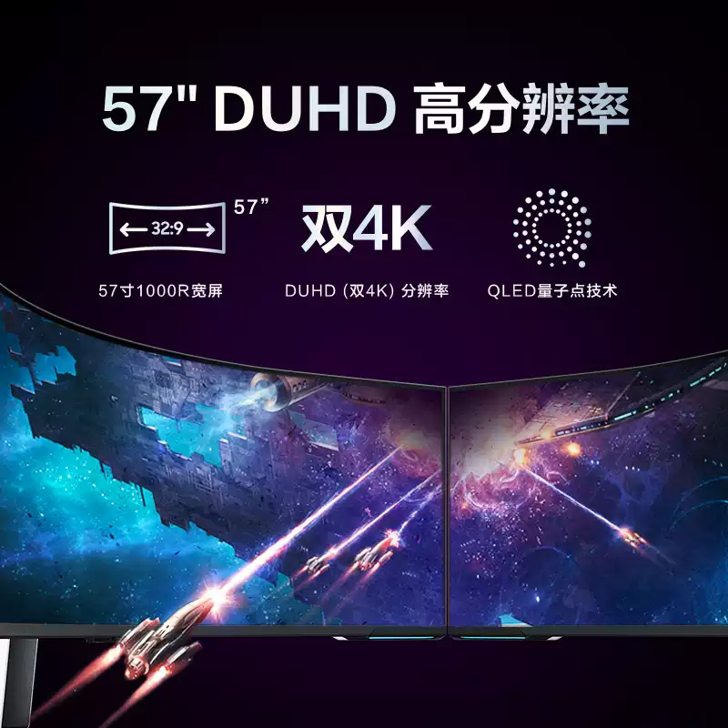三星 57英寸 S57CG952NC MiniLED 双4K曲面带鱼屏 240Hz 游戏电竞显示器